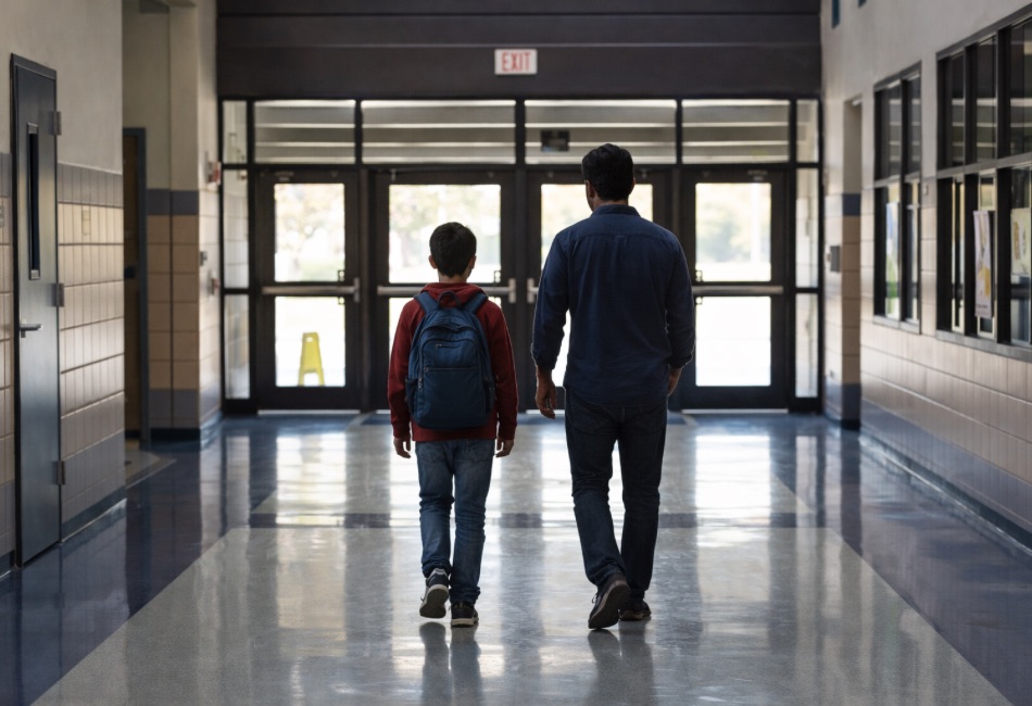 Un padre acompaña a su hijo fuera del entorno escolar: no es huida, es una decisión para proteger la dignidad.